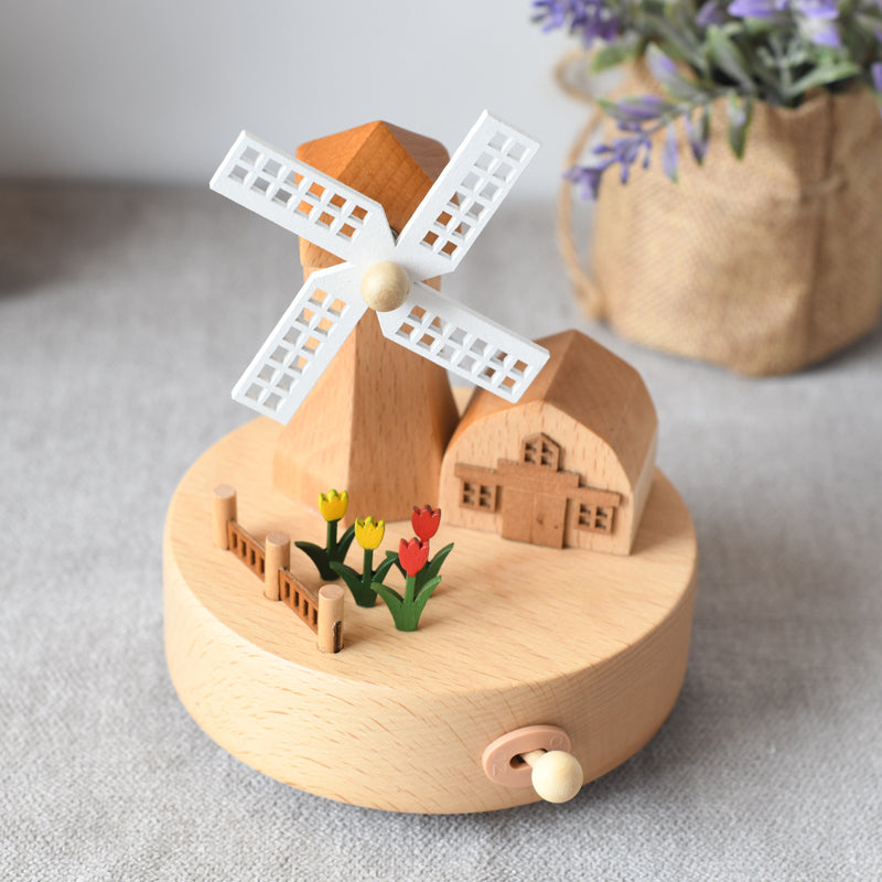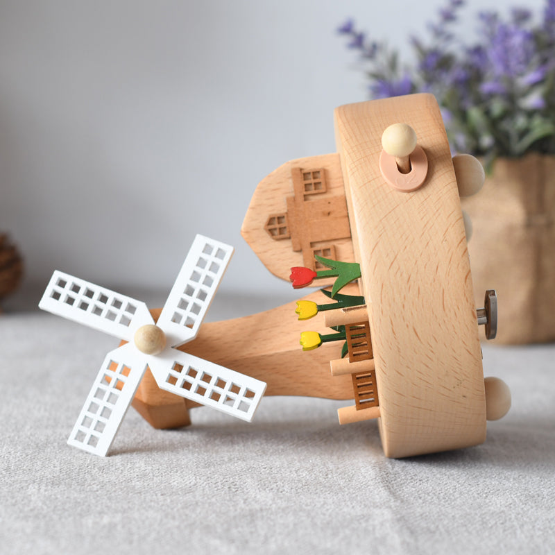 Wooden Music Box - Dutch Windmill - The city of the sky tune