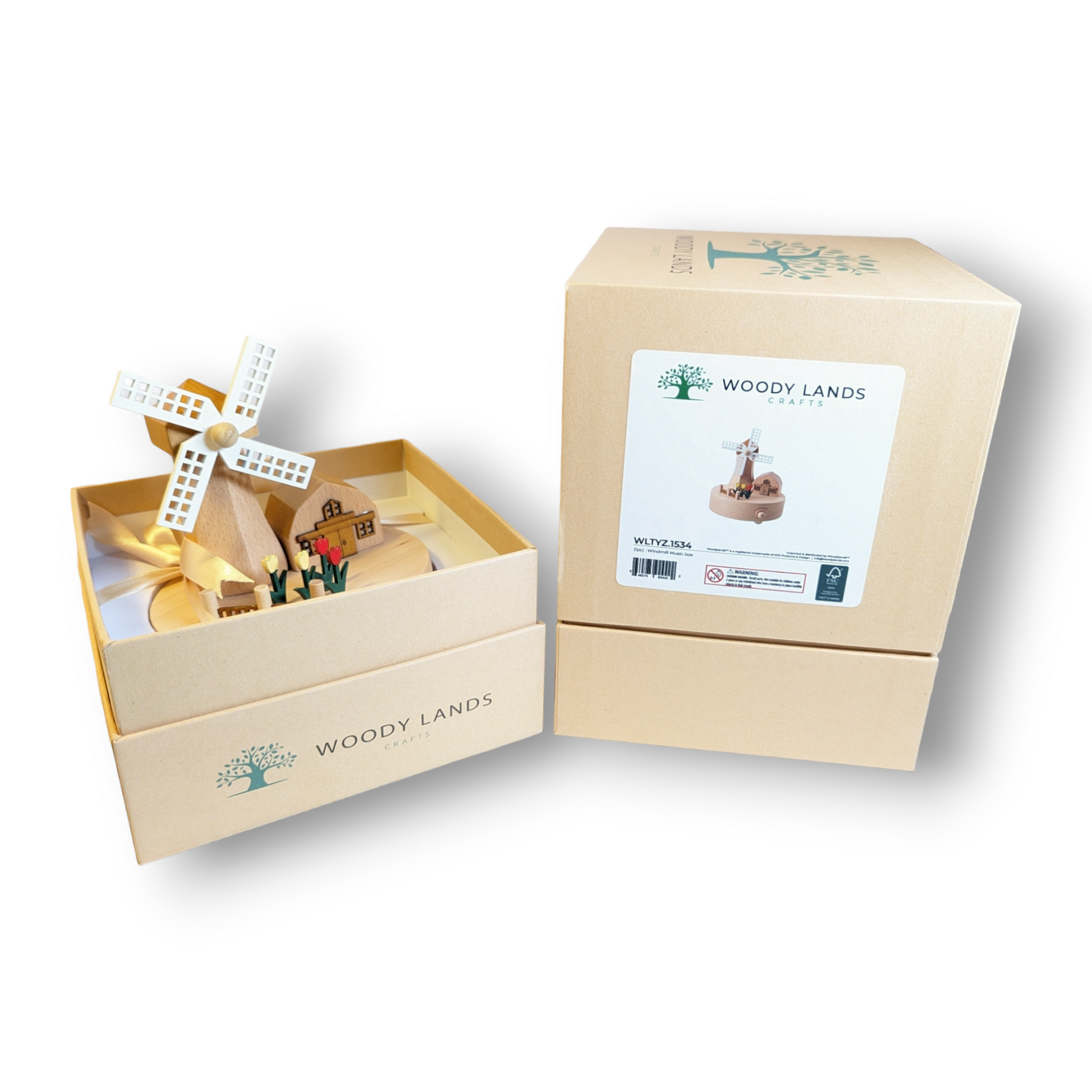 Skilfully hand-crafted by Woody Lands artists, this beautiful Windmill scene music box is made of specially selected grades of beech wood sustainably sourced throughout Asia and Europe.